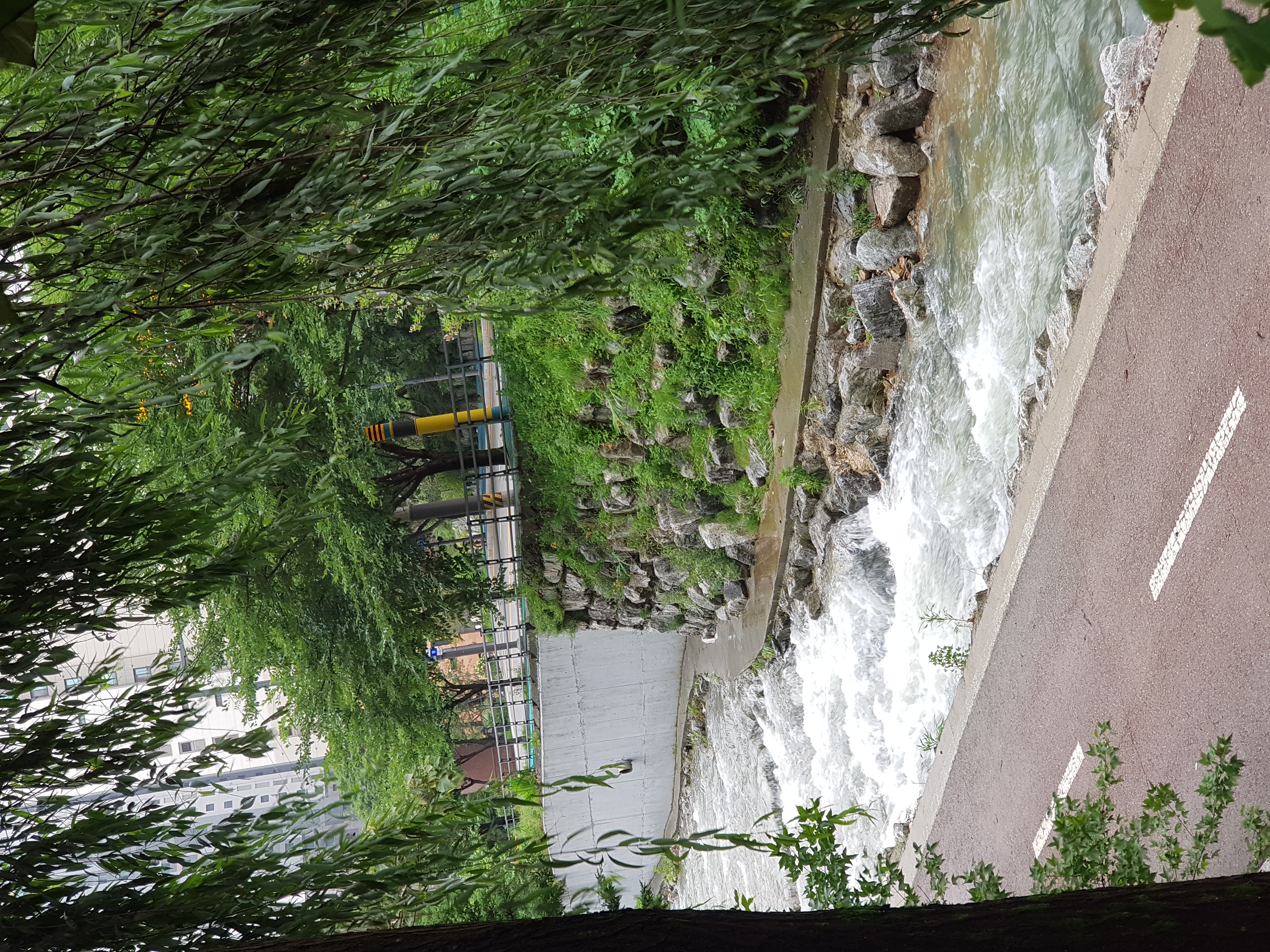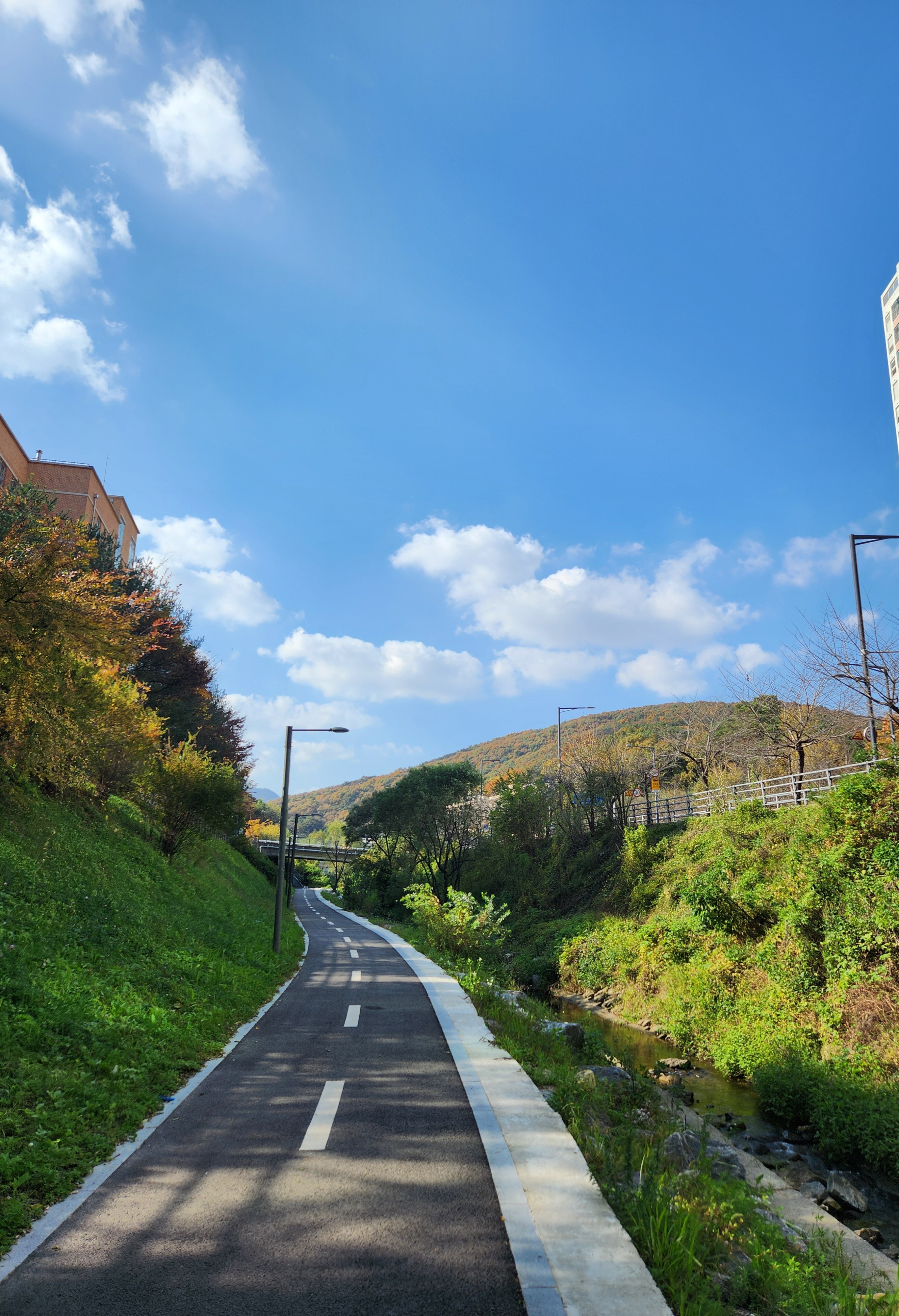 시냇가의 걷는 길로 나갔다.